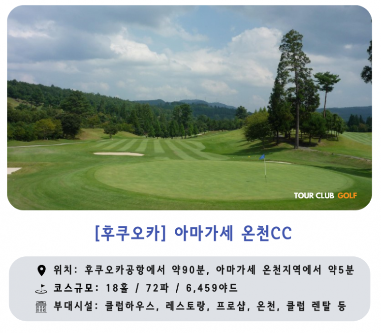 - 아마가세 온천 CC : OUT코스에서 만년산을 IN코스에서는 석가악을 조망하며 라운드 후에는 가까운 온천도 즐길 수 있는 특별한 골프장입니다.
