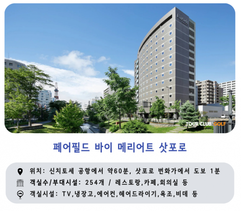 | 숙소정보 : 페어필드 바이 메리어트 삿포로(Fairfield by Marriott Sapporo) 또는 동급 (2인1실) | ||