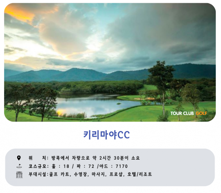 코스를 제공합니다.국립공원 내에 위치한 관계로 페어웨이가 일반적인 태국 골프장과는 달리 약간 딱딱한 편이며,