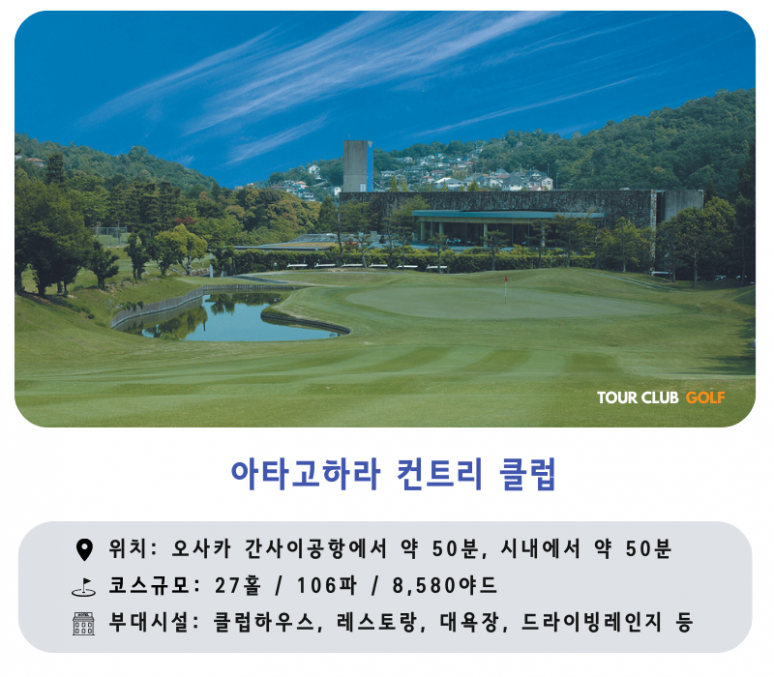 ?1960년에 개장하여 60년이 넘는 역사를 가진 아타고하라CC는 그 세월과 함께 한 장엄한 수목들의 푸른 빛으로 침착하고 심신이 편안해지는 분위기를 자아냅니다. 적당한 기복과 함께 다양한 벙커와 연못 등을 배치한 운치있는 코스 레이아웃으로 골퍼들의 도전성을 불러일으켜 편안한 분위기와는 다른 재미도 느낄 수 있습니다.?