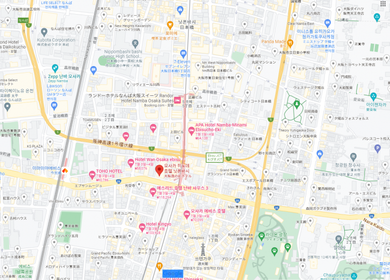 [? 히노데 호텔 주변 지도 - 오사카 시내 ]