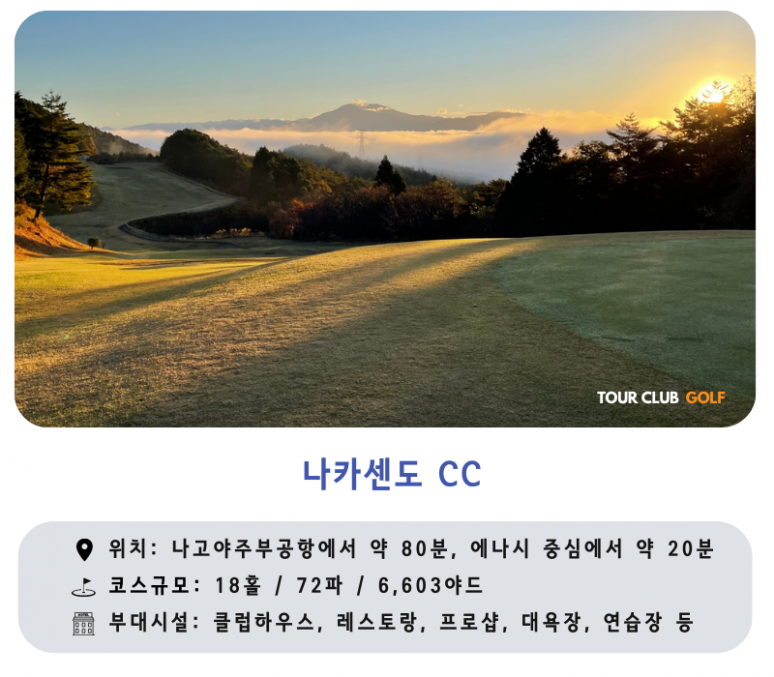- 나카센도CC : 해발 500M에 위치하고 있어 한여름에도 쾌적하고, 코스에서 조망하는 운해와 석양이 장관인 아름다운 코스입니다.