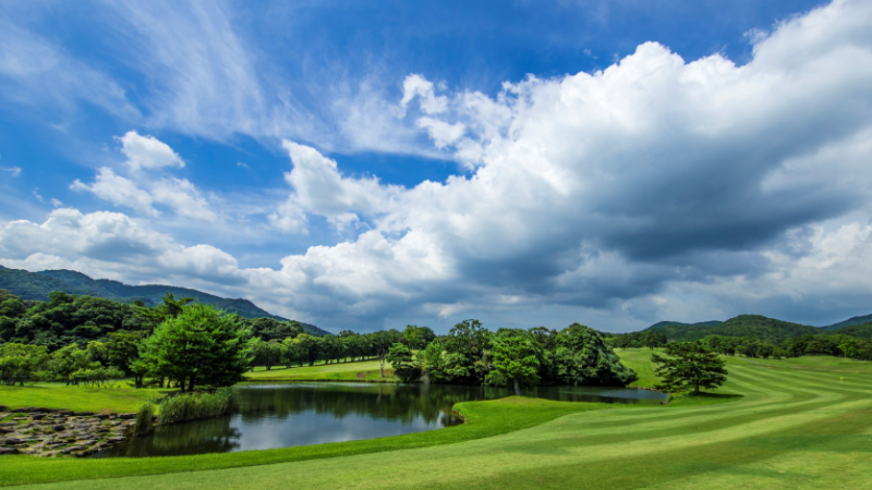 정비가 잘 된 코스는 전부 18홀. OUT은 플랫하고 장엄한 홀이 많고, 3·4번의 미들 홀은 거리가 길기 때문에 어느 정도의 비거리가 필요합니다.