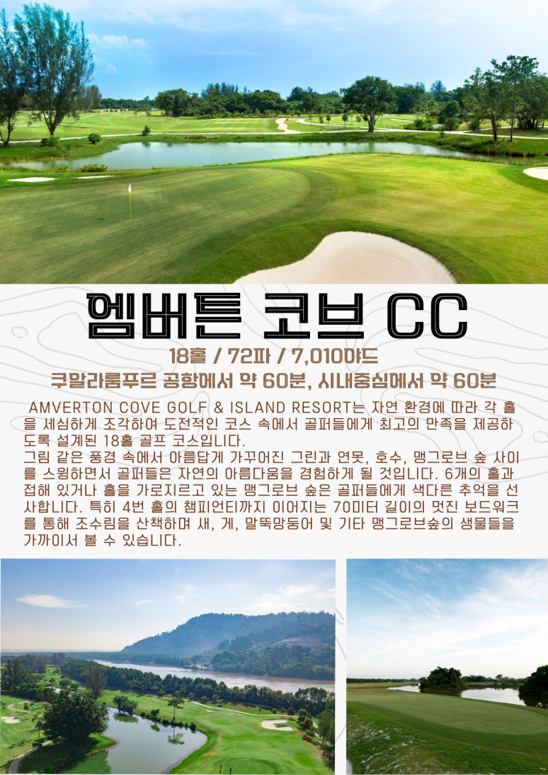 | 리조트 조식 후 골프장으로 이동 엠버튼코브CC 18홀 라운드 석식 후 공항으로 이동 |