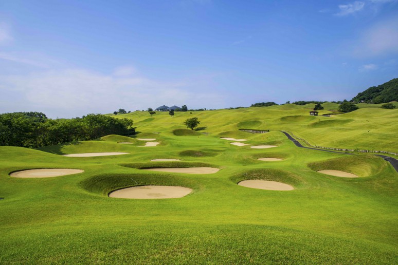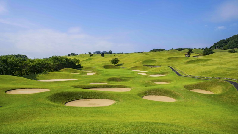 신세이잔소CC는 천재 '피트 다이'가 설계한 구릉지 코스입니다. 구릉 코스이지만 11개의 홀에 연못이 배치되어 레이크사이드의 재미도 있습니다. 브리티시 아메리칸을 표방하는 언듀레이션, 명물인 아일랜드 그린의 짧은 홀 등 세련된 디자인으로, 아름다움과 난이도가 조화를 이룬 홀들이 이어집니다. 명물의 17번 숏 홀은 대담한 레이아웃의 아일랜드 그린으로 되어 방문하는 골퍼들을 매료시킵니다. 높은 지대에 위치해 개방감이 뛰어나며, 배경에 펼쳐진 산과 사계절 꽃과 나무도 이상적이며 몇 번을 도전해도 지루할 틈이 없습니다.?