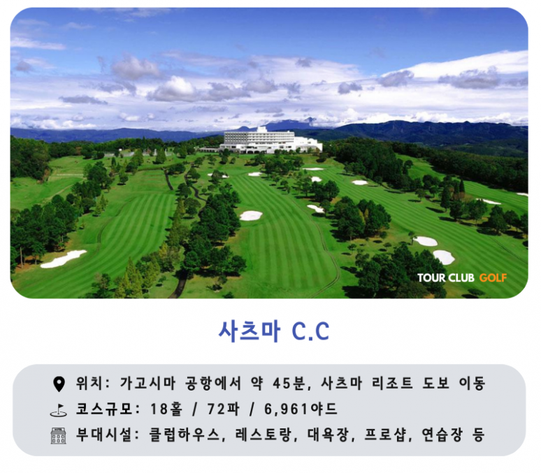 - 사츠마CC : LPGA 시니어투어 [교세라 레이디스 오픈]이 개최된 가고시마 사츠마 고원에 위치한 명문 골프 코스 입니다.