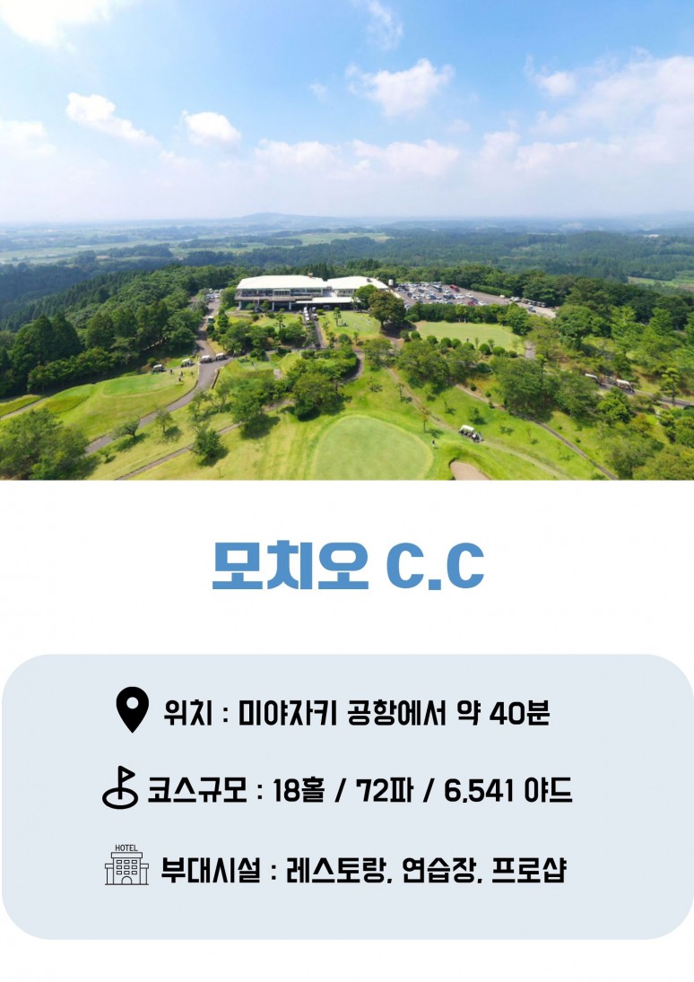 기상 후 체크아웃, 조식 후 골프장 이동 모치오CC 18홀 라운딩 셔틀버스로 공항 이동(50분) 미야자키 국제공항 출발 인천 국제 공항 도착 |