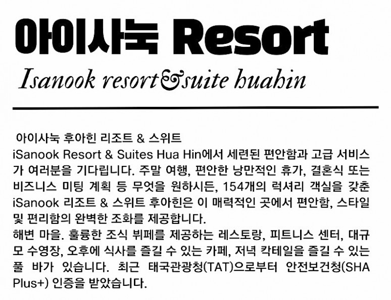 ?● 후아힌 아이사눅 호텔 [2인1실]