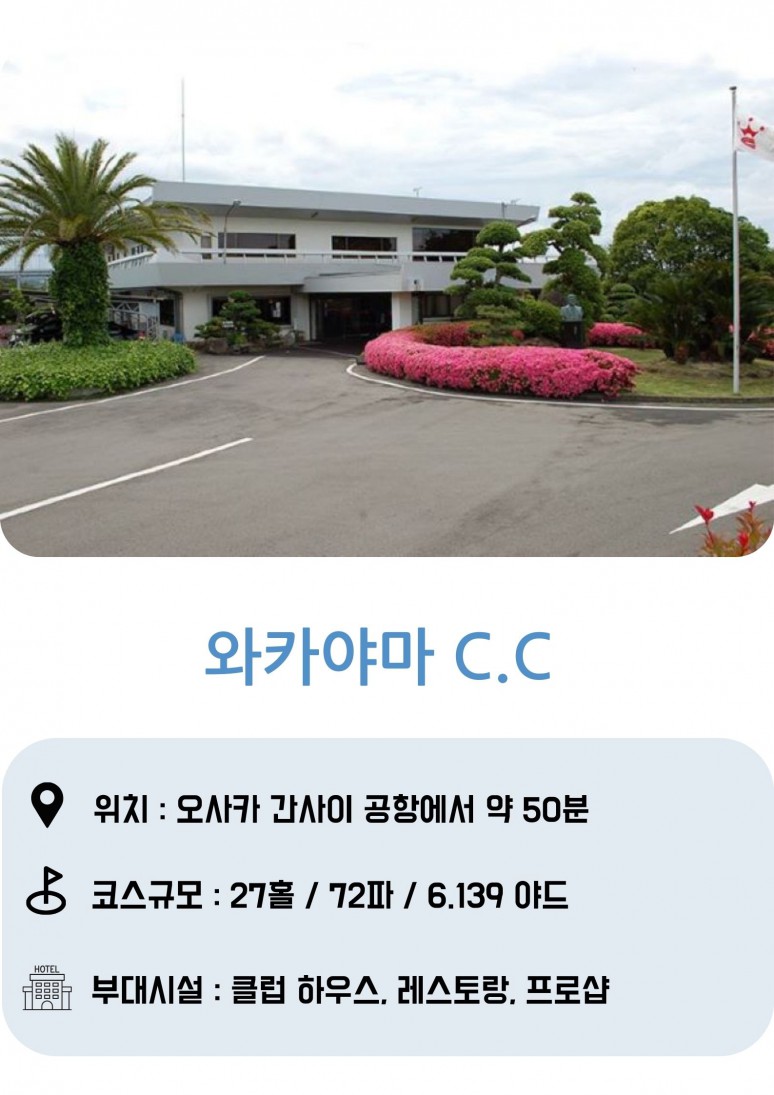 -?와카야마C.C : 언듈레이션이 완만하고 넓은 페어웨이를 이용으로 OB 걱정 없는 27홀 코스