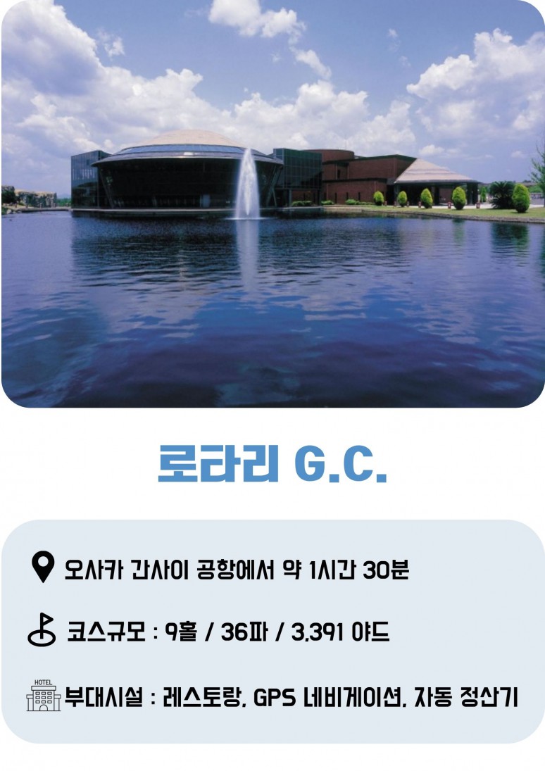 | 오사카 | 호텔 조식 후 골프장 이동 로타리,로즈우드,후지오노CC 또는 동급 18홀 (셀프플레이) 라운드 후 고베 아울렛 또는 골프샵, 드럭스토어 방문 가능 호텔 투숙 및 석식 & 자유시간 |