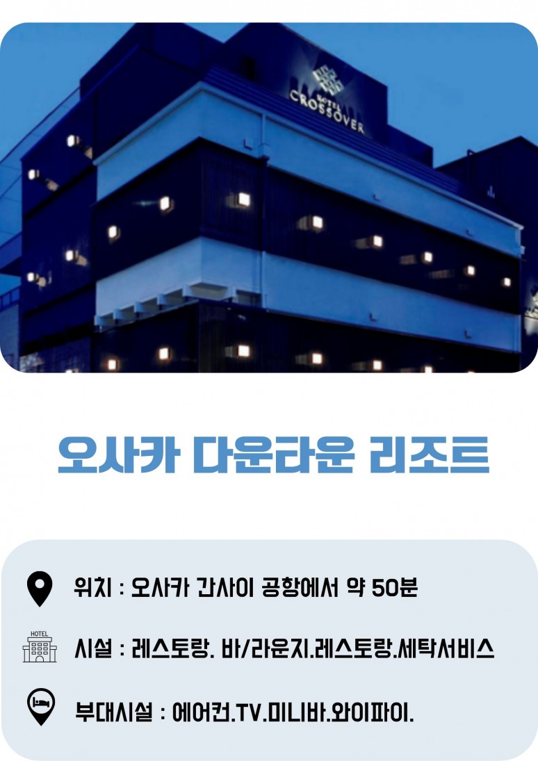 | 숙소정보 : 오사카 다운타운 호텔 또는 동급(3성) | ||