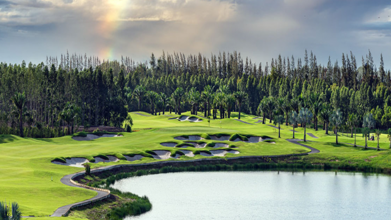 2014년 보수공사를 통해 전장이 7,114yd로 늘어난 후 2016년 9홀을 엑까차이 잔투통이 전장 3,665yd로 컨투어 및 코스공사를 했습니다. 그리하여 총 27홀 전장 10,719yd의 골프장이 됩니다. 또, 2019년 아리랑 아웃코스(out) 추가하여 전체 36홀 전장 13,528yd의 골프장이 되었습니다. 기존 18홀 코스는 나무가 많고, 16개 홀이 수로와 호수가 아이피 지점에 있기 때문에 드라이버를 신중히 치지 않으면 위험하며, 페어웨이도 상당히 좁은편 입니다. 잔디는 구코스 전부 버뮤다로 조성되었으나 최근 그린의 잔디를 파스팔람으로 변경하였으며 신코스는 그린과 페어웨이 모두 최상급의 파스팔람으로 조성하였습니다. 신코스 9홀은 매홀마다 워터 해저드가 플레이 되며, 전장이 길어 장타자에게는 찰렌지를 할만한 코스입니다.