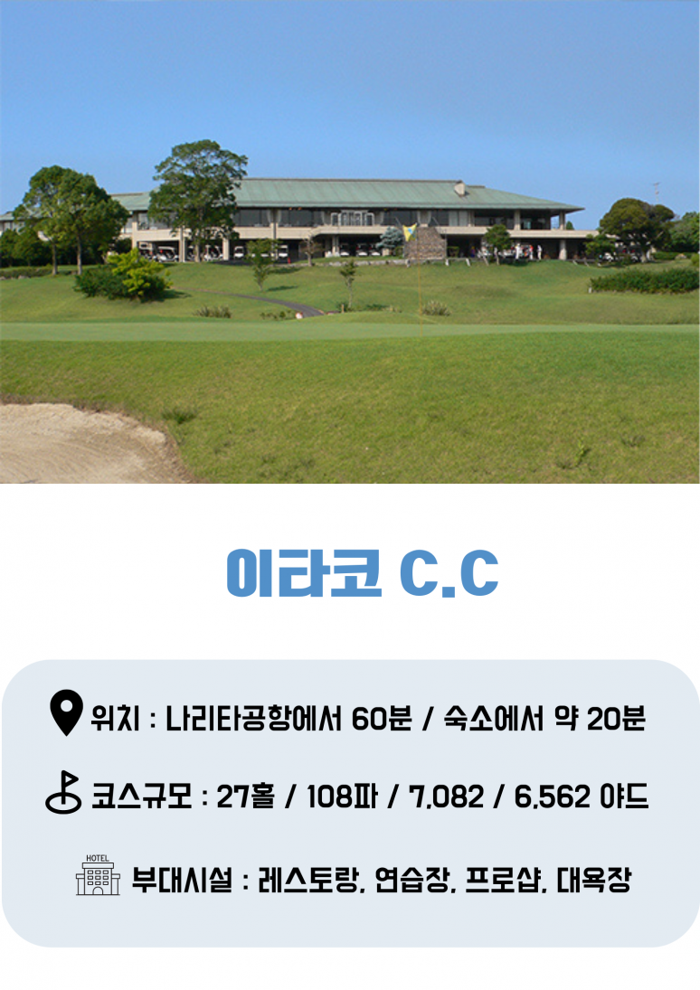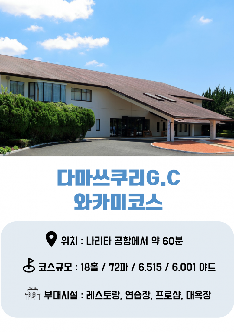 ■ 라운딩은 다이아그린, 다마츠쿠리, JGM가스미가오카, 가스미가우라, 노스쇼어, 이타코CC, 가시마모리CC 중 3색으로 진행 됩니다. ?