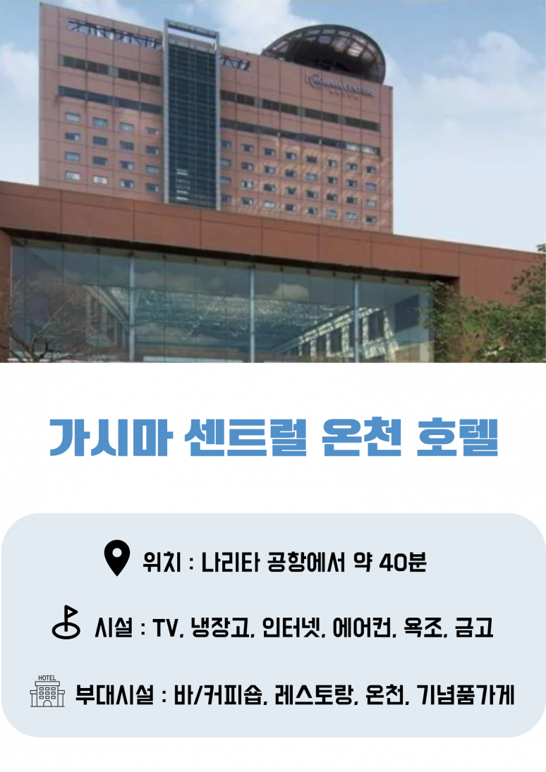 | 숙소정보 : 가시마 센트럴 온천 호텔 https://www.ekch.jp/ | ||