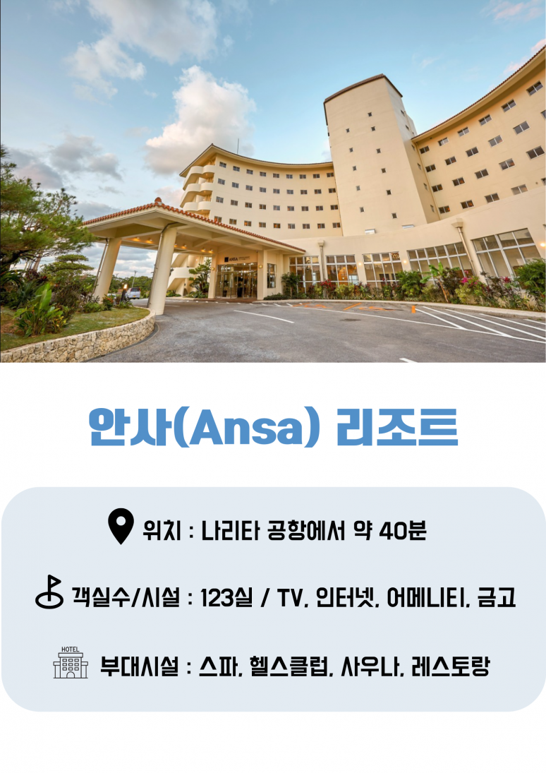 | 숙소정보 : 안사 리조트 (TEL:098-963-0123) | ||