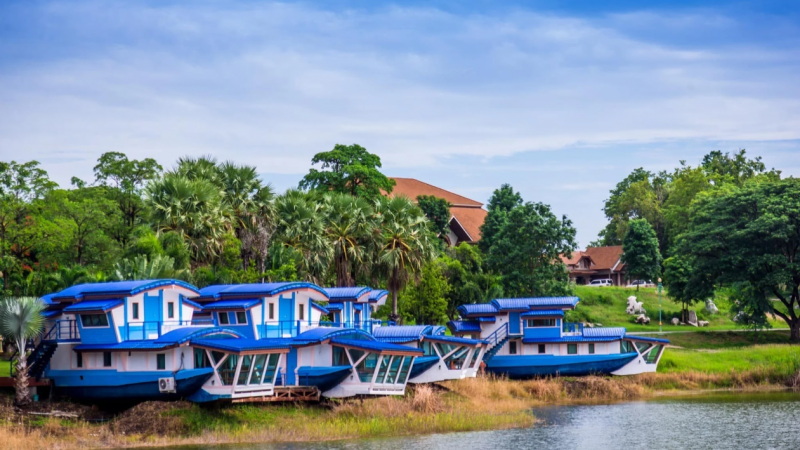 칸차나부리 시내에서는 약 40KM 떨어져 있고 칸차나부리의 유명한 관광지들뿐만 아니라 산림 등으로 인하여 자연적 아름다움으로 둘러싸인 곳입니다.또한 해발 250M 이상이 산자락에 위치하여 시원하고 11월부터 아침 18도, 낮 기온 28도 전후의 기온을 보이며 시기적으로 건기 시즌이라 한국의 초가을 날씨처럼 선선하므로 얇은 긴팔 옷을 준비하시는 것이 좋습니다.