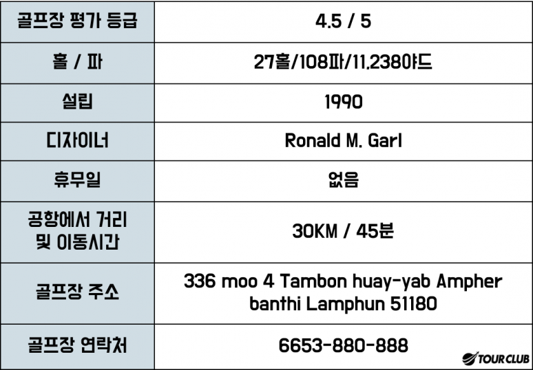 날씨가 좋고 선선한 태국 북부 치앙마이주의 계곡 사이로 골프장의 미풍과 시원한 공기가 감도는 가운데 특히 10월부터 2월까지 겨울 새벽 추위와 안개가 기승을 부립니다. 해발 1500m 고지에서 자연을 사랑하는 이들이 놓칠 수 없는 치앙마이의 매력입니다. 알파인 골프리조트-치앙마이 골프장은 산으로 둘러싸인 아름다운 자연이 가득한 계곡을 사이에 두고 태국의 골프장답게 도전적이고 독특한 배치로 골프장 코스를 만듭니다. 국제 기준에 맞는 품질로 재미있고 도전적이며 자연에 가까운 골프 경기를 요구하는 골퍼들에게 안성맞춤입니다.
