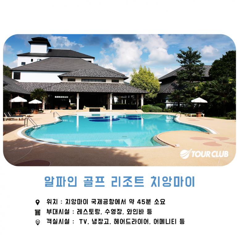 알파인 골프 리조트 ? 치앙마이는 3개의 코스로 나뉘어 있는 27홀 국제 선수권 골프 코스에서 골퍼들을 초청하여 도전을 경험하게 하려고 합니다: '더 베스트 리뉴얼 어워드 2007'을 수상한 세계적인 디자이너이자 태국 골프장 최고 디자이너인 미스터 피라폰 나나트라가 디자인한 코스 A-3,830야드, 코스 B-3,712야드, 코스 C-3,702야드는 어렵고 쉬운 홀이 완벽하게 섞여 도전과 재미를 보장합니다. 페어웨이 그린상태가 늘 최고의 상태를 유지하며 보편적인 태국의 평지 코스와는 다르게 아기자기한 코스를 즐길 수 있습니다. 그린은 넓고 빨라서, 코스 공략 시 생각하고 공략해야만 좋은 스코어를 기대할 수 있어 게임의 재미를 느낄 수 있는 골프장입니다.