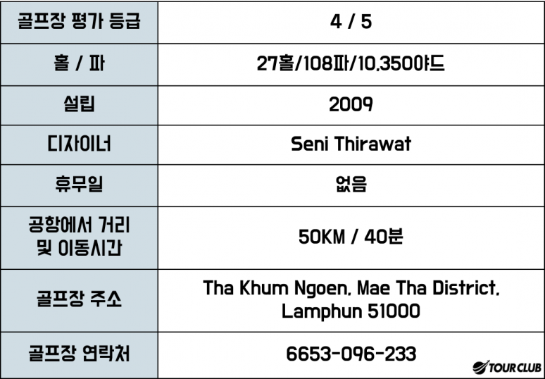 아티타야 치앙마이는 치앙마이 공항에서 40km 정도 떨어진 곳에 위치한 가장 최근에 완공된(2009년 개장) 골프장으로 골드코스와 캐년코스, 무궁화코스로 나뉘어져 있습니다.