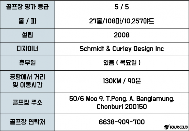 페어웨이 벙커와 그린 사이드 벙커 등 벙커가 많고 깔끔합니다. 그린도 빨라 그린의 언듈레이션도 훌륭합니다.골퍼들에게는 쉬운 코스가 아니며, 파타야에서는 수준급 시설에 코스관리, 난이도를 가지고있는 훌륭한 골프장입니다.