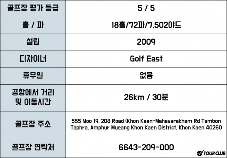 자연의 아름다운 풍경을 배경으로 클럽하우스 또한 이싼 지역의 문화를 컨셉으로 디자인 되었습니다.완벽한 건축물에 식당, 프로샵, 락커, 골프 연습장 등의 시설이 완비되어 조화롭게 이루어져 있는 골프장 입니다.
