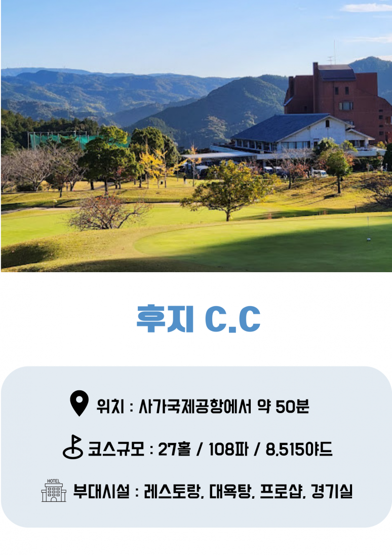 조식 후 골프장으로 이동 ▶하나마츠리 CC 18홀 라운딩 사가 공항으로 이동 (약 40분이동) 사가 국제 공항 출발 인천 국제 공항 도착 |