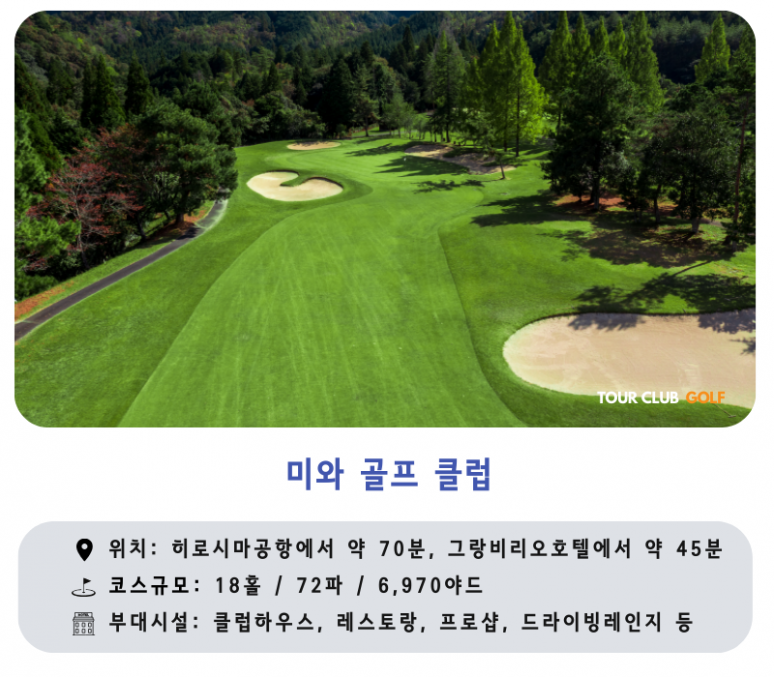 - 미와GC : 일본 나카시코쿠 지역 최대급의 넓이를 자랑하는 쾌적한 골프 코스