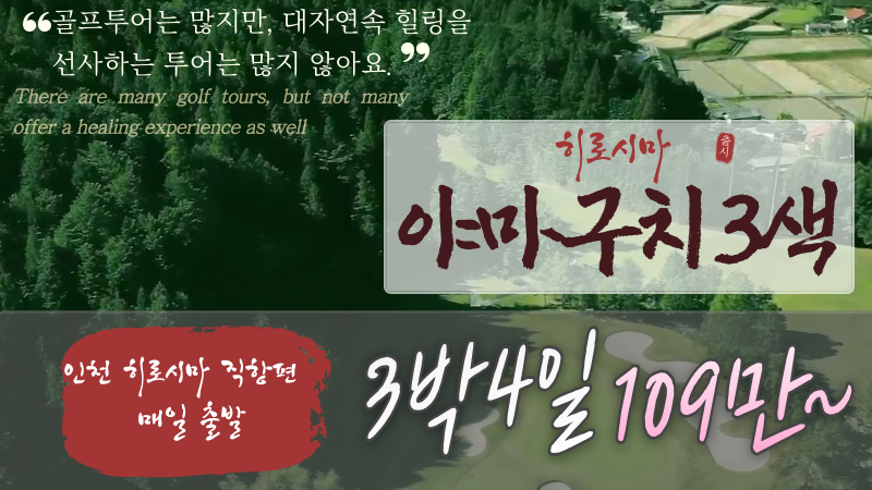 인천 국제공항 -> 히로시마 국제공항 도착 기사 미팅 후 골프장으로 이동 (약 50분) ★ 히로시마 니시CC 18홀 라운드 (일몰시까지)(※ 셀프+카트 플레이) 호텔로 이동 (약 45분) / 호텔 체크인 후 휴식 및 온천 이용♨ |